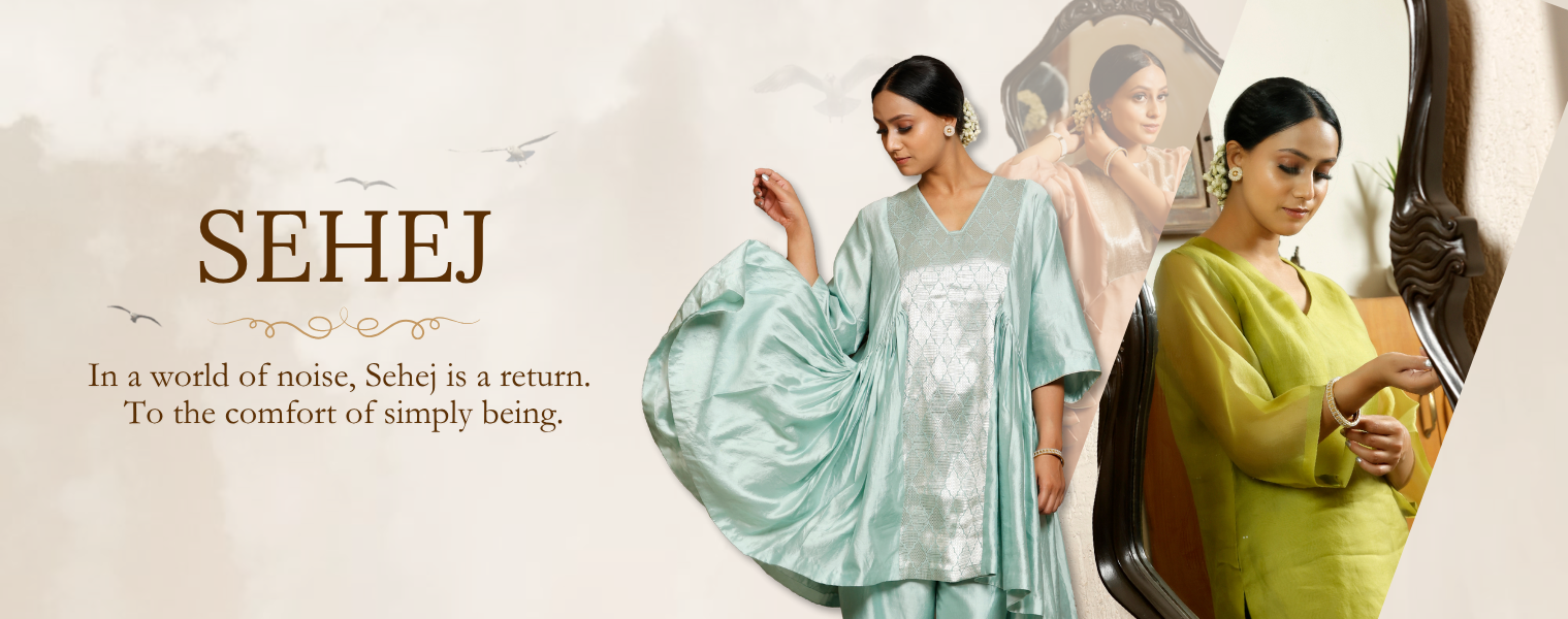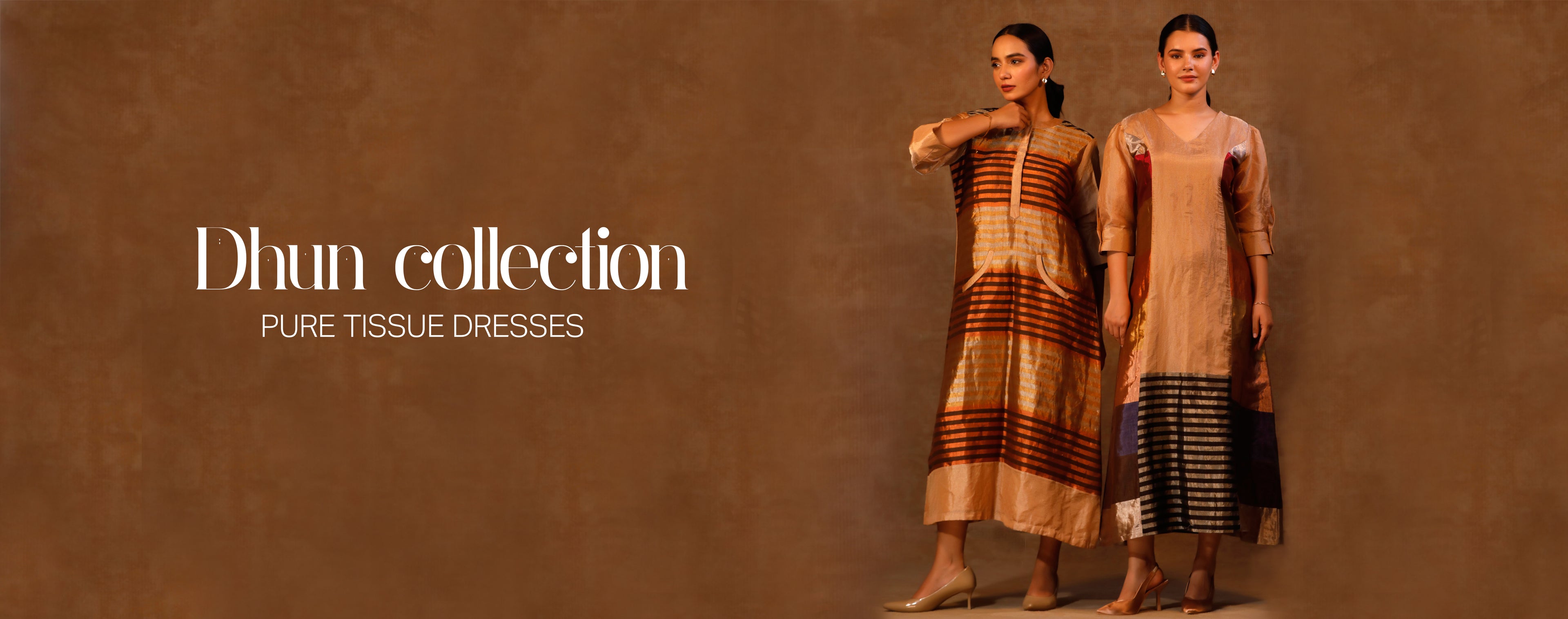 Journey through the 'Dhun of Benaras' collection, where each fabric harmonizes the sacred symphony of the ancient city into a wearable form of art.