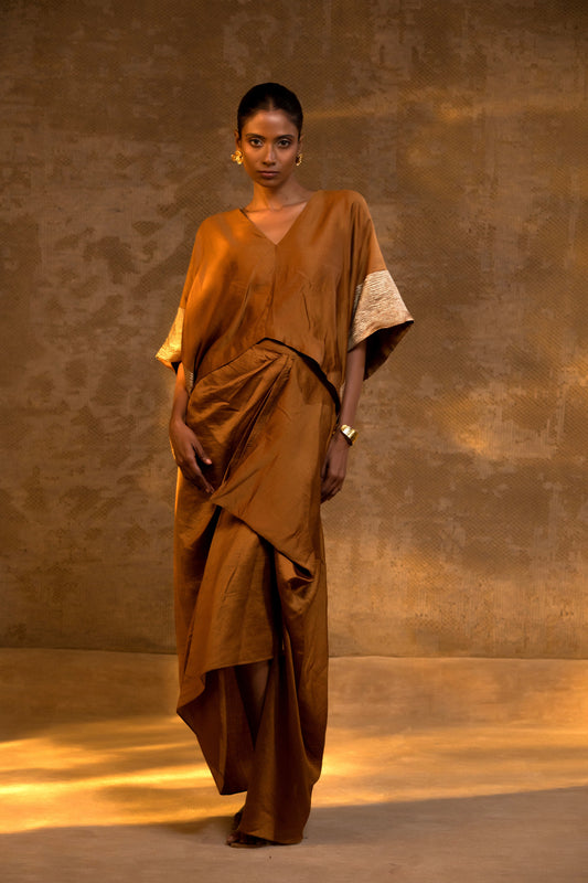 Agneya Silk Draped Skirt Set - DarkAmber