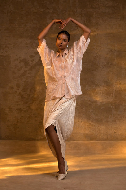 Agneya Tissue Cowl Skirt Set - Blush