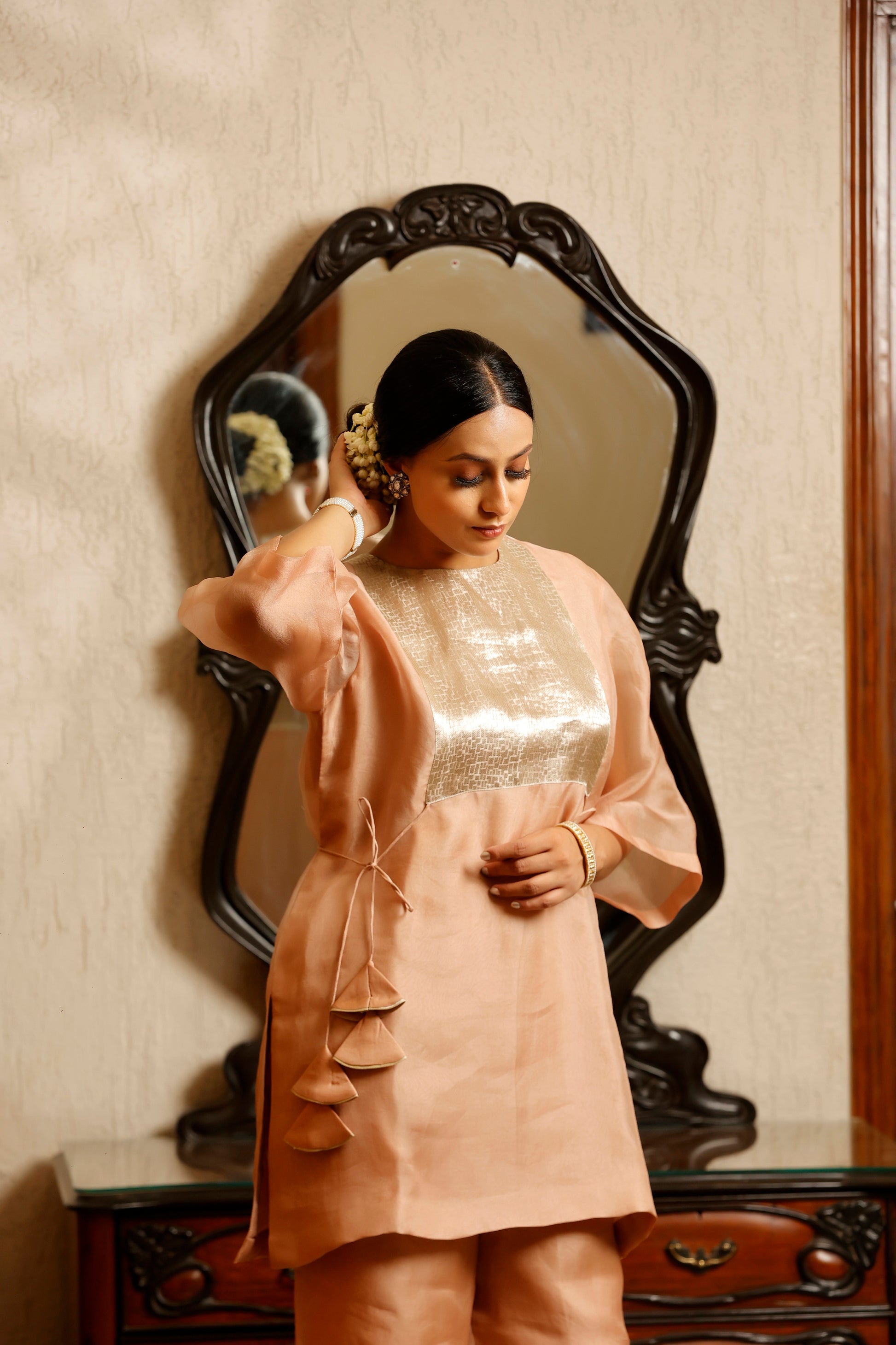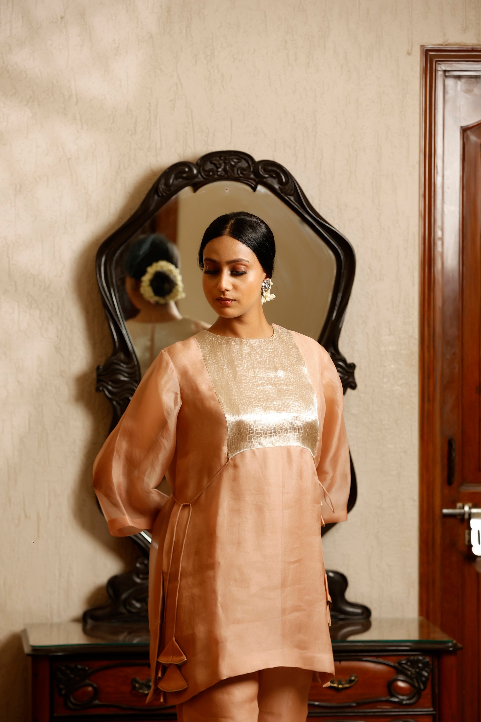 Sehej Peach Short Kurta Set