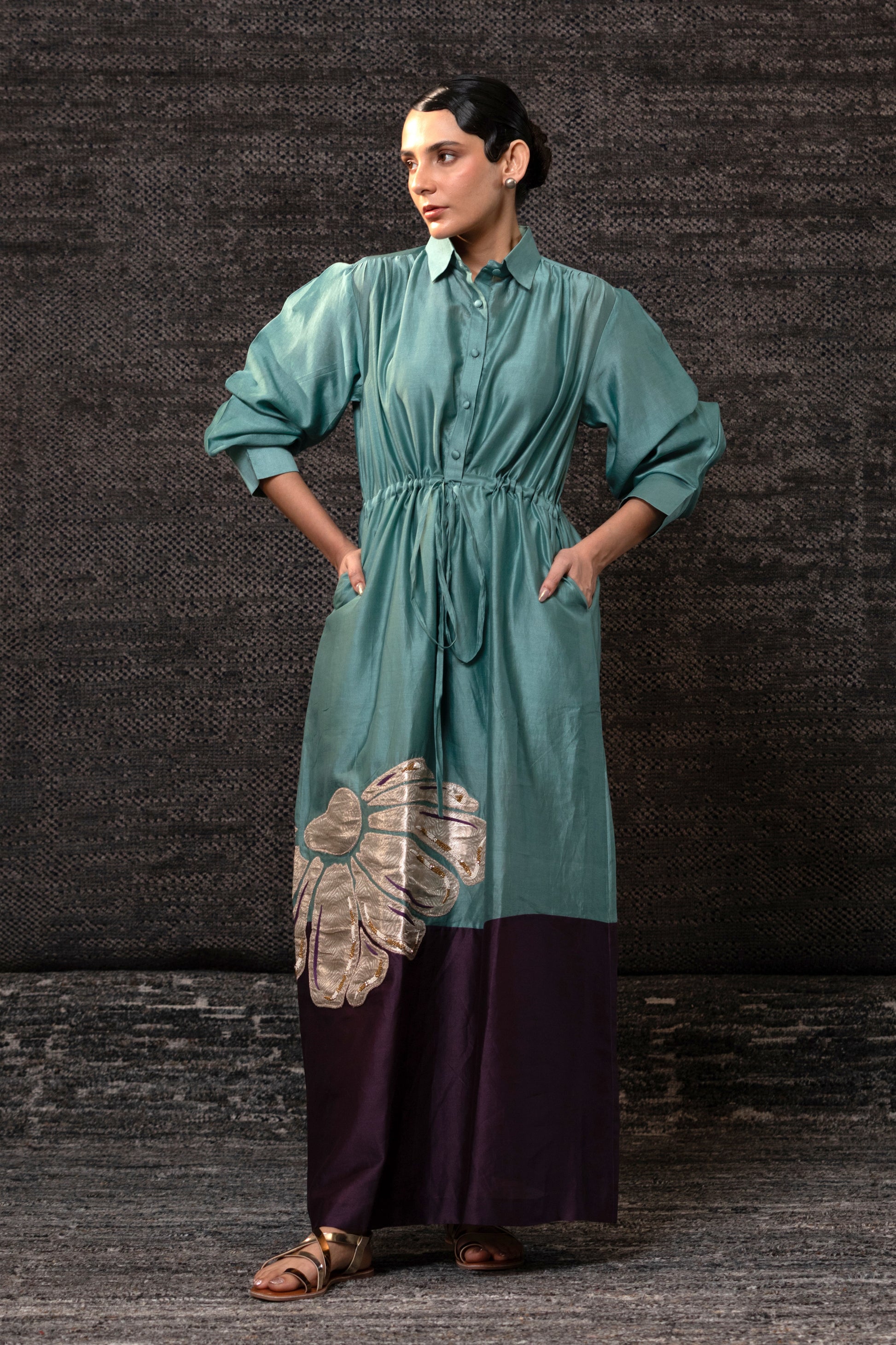 Lightweight, breathable chanderi with a fluid fall; wear cinched or relaxed.