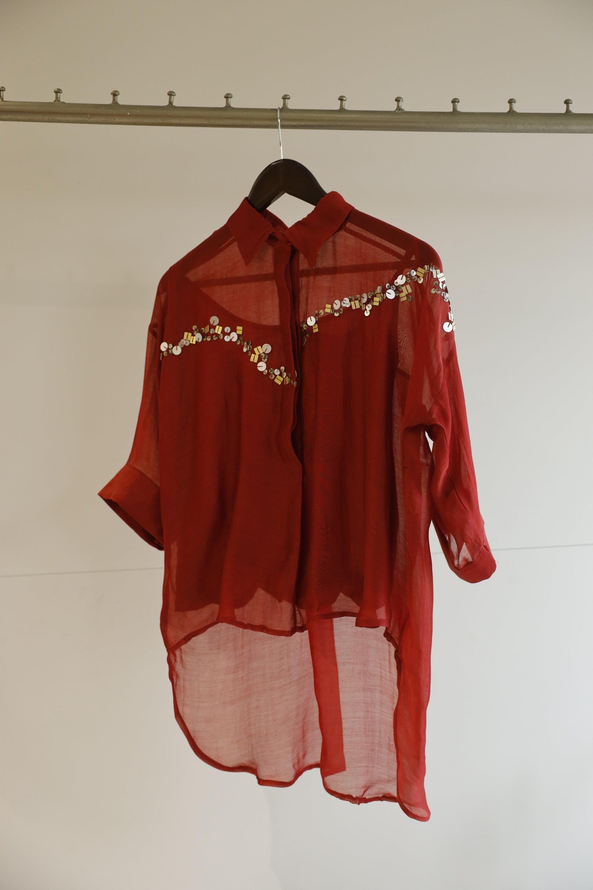 Silk Sequins Shirt - Red